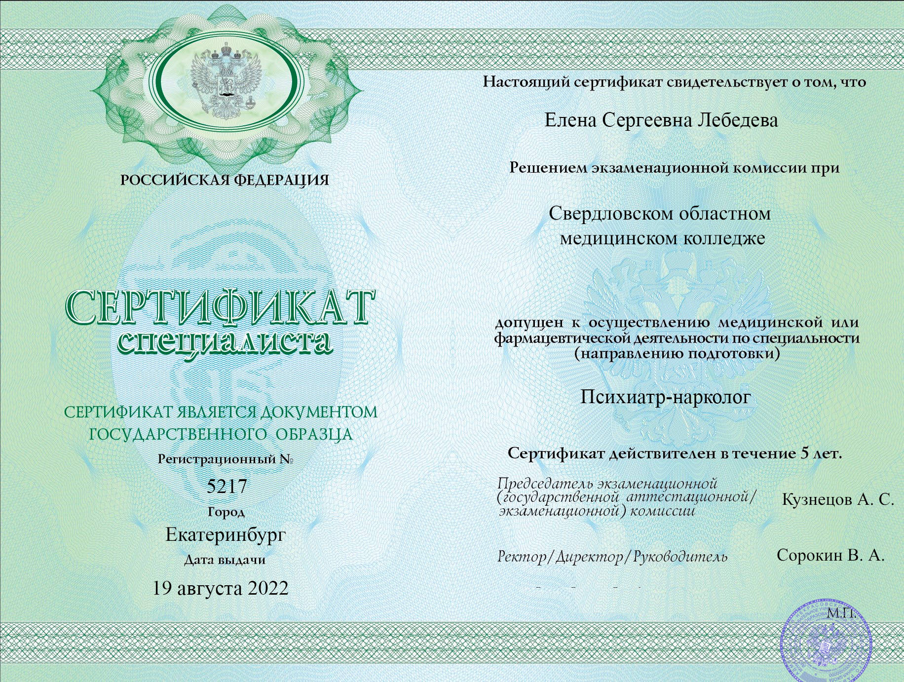 Елена Сергеевна Лебедева врач нарколог клиники доктора Стукаловой в Новоуральске